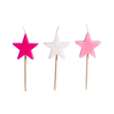 סט 6 נרות קיסם כוכבים ורוד-לבן