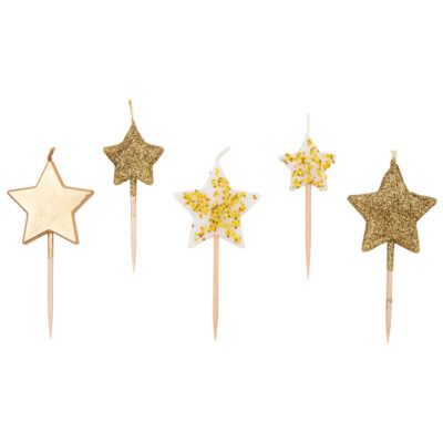 סט 6 נרות פרימיום GOLD GLITTER STARS