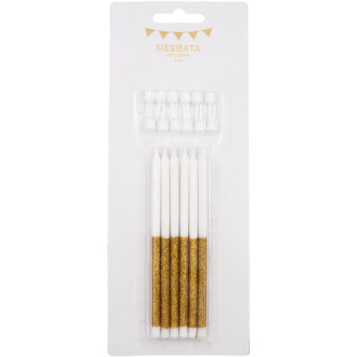סט 12 נרות גליטר מנצנץ זהב / לבן