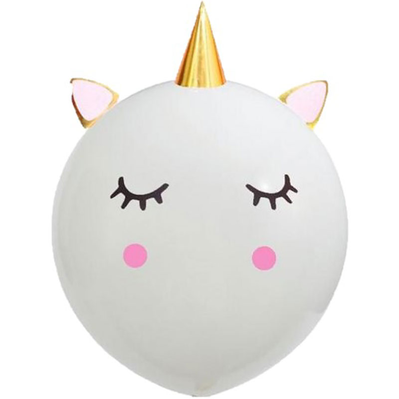בלון יוניקורן גדול, לניפוח באוויר או בהליום, עם סט מדבקות לעיצוב עצמי.