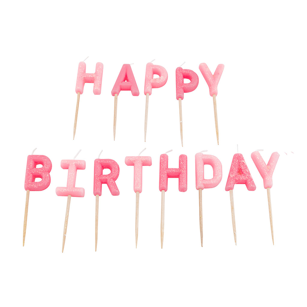 סט נרות ורוד גליטר HAPPY BIRTHDAY