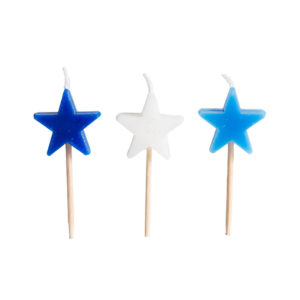 סט 6 נרות קיסם בצורת כוכבים, בגדלים שונים. מושלמים לקישוט עוגה, קאפקייקס ועוד.