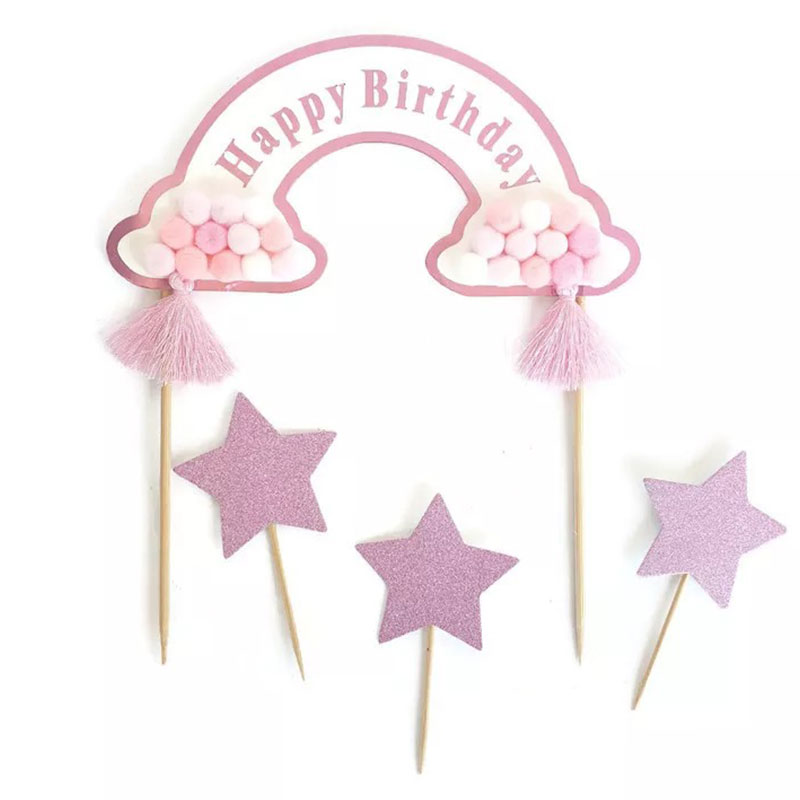סט טופרים HAPPY BIRTHDAY קשת בענן | ורוד