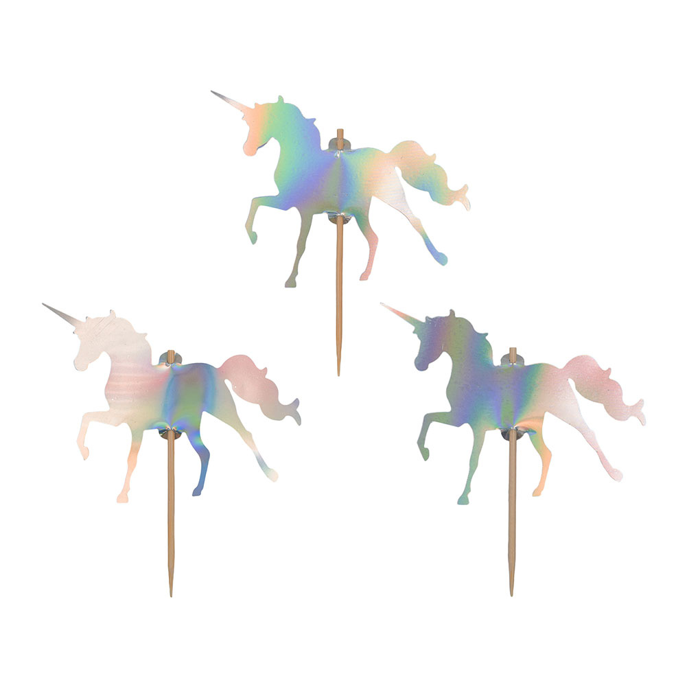 סט קיסמים עם טופר דמוי חד קרן חלומי (אירידיסנט כסוף). ניתן לשלב כקישוט על עוגה, קאפקייקס ועוד.