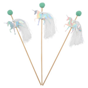 קיסם / טופר גבוה עם דמות חד קרן חלומי (אירידיסנט ורוד פנינה) בעל זנב חוטים מטריף ופונפון ורוד. ניתן לשלב כקישוט על עוגה, קאפקייקס ועוד.