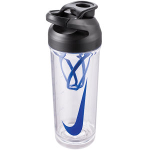בקבוק השייקר TR Hypercharge של NIKE הוא השייקר האולטימטיבי למקצוענים. הוא מגיע במבנה שקוף וצלול, עם פקק פליפ עמיד בנזילות וקל במיוחד לפתיחה וסגירה, ומיקסר אינטגרלי להכנת תערובת אחידה של אבקות ותוספי מזון. הוא מסיבי במיוחד ועמיד בזעזועים, אינו סופג ריחות ונטול BPA.