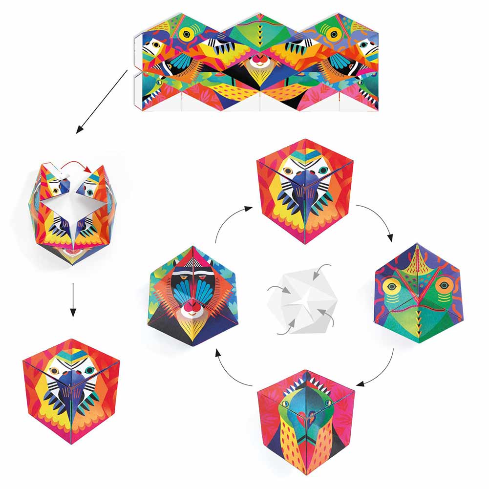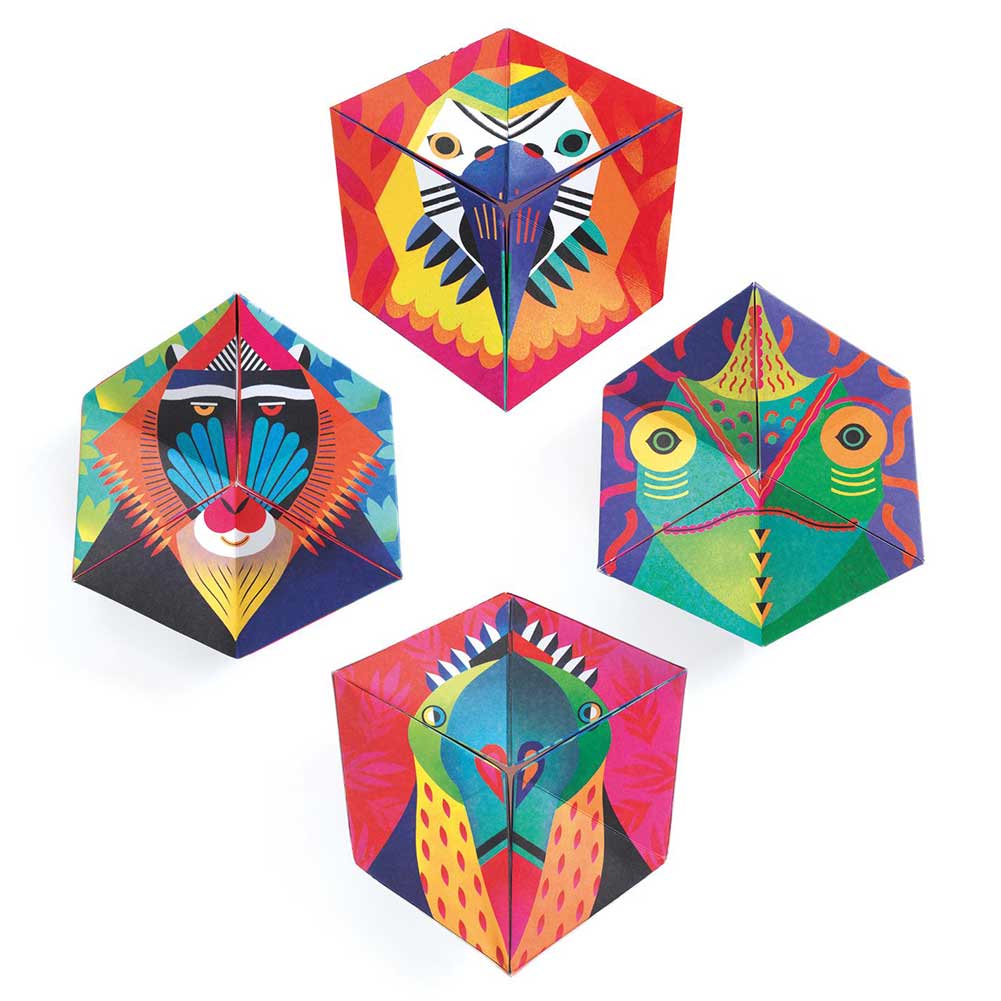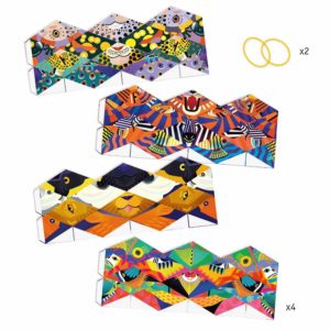 אומנות קיפולי הנייר מבית המותג DJECO. הפעם מקפלים ומחברים ליצירת חיות. בכל פעם החיות מתחלפות – הוראות מפורטות מצורפות.