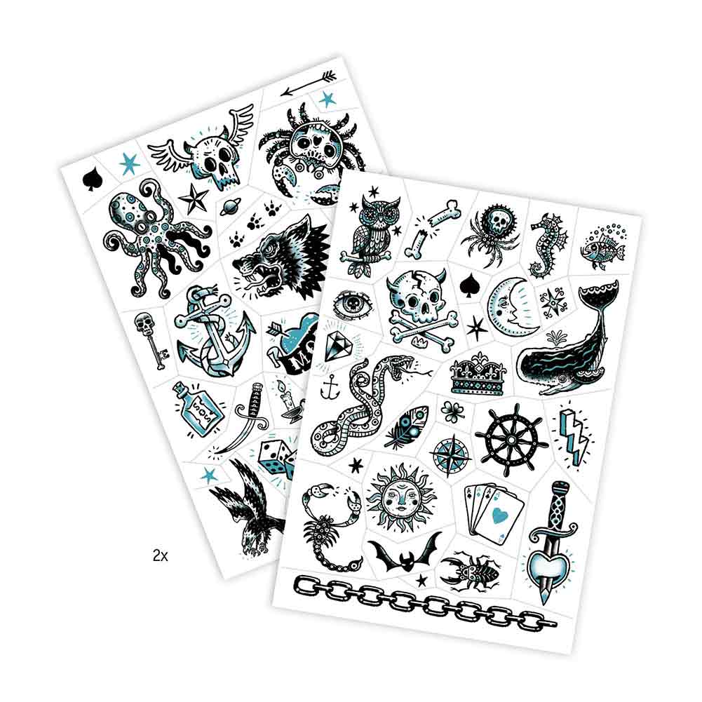 ערכת קעקועים זמניים מדליקים ממש, בגווני טורקיז ושחור, מבית המותג DJECO.