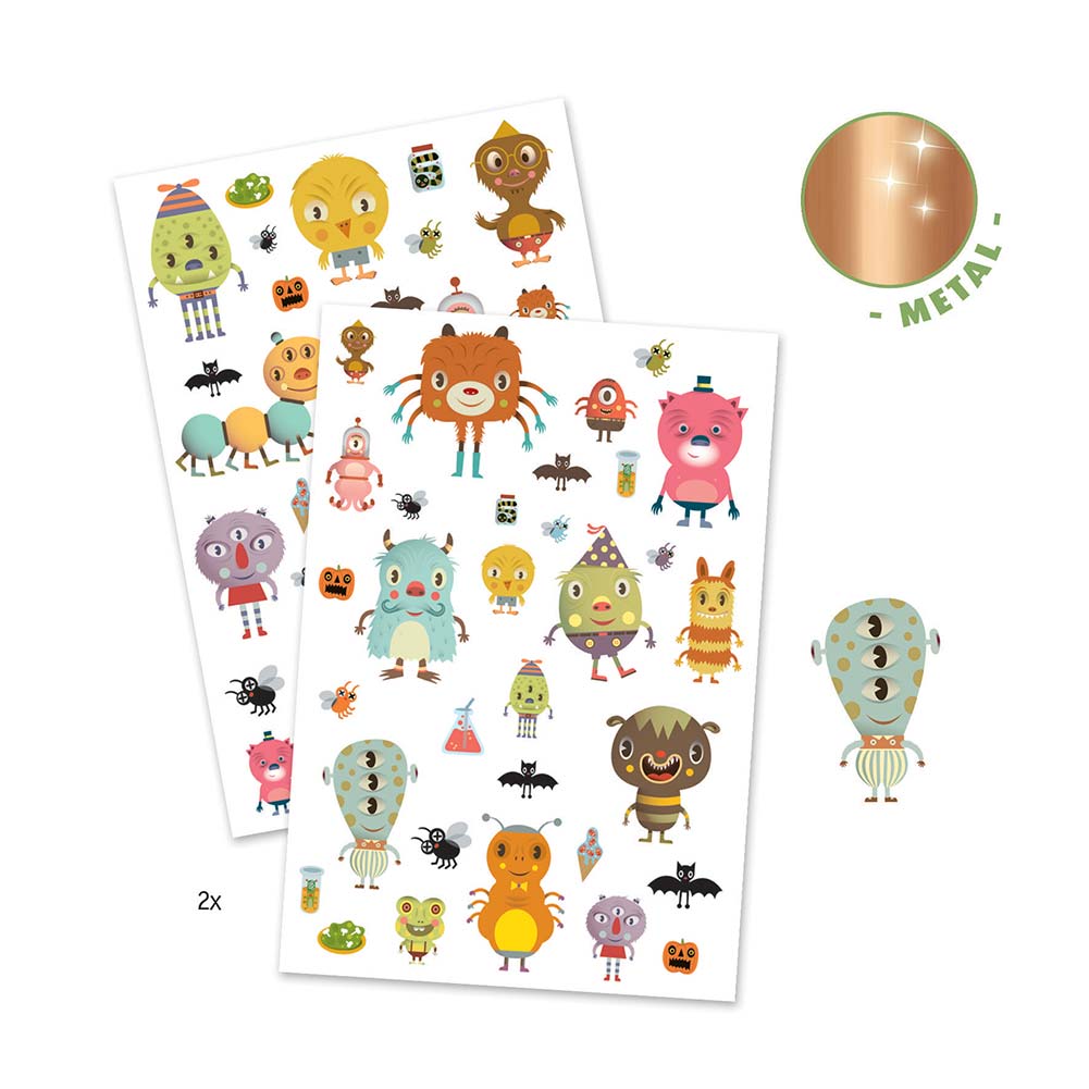 מכיל 2 דפי קעקועים מטאליים בדמויות מפלצות