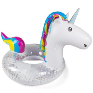 גלגל ים מתנפח בצורת חד קרן עם נצנצים, מבית המותג Big Mouth הידוע במתנפחים המעוצבים והאיכותיים שלו.