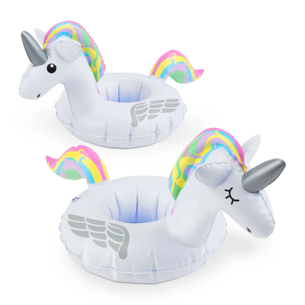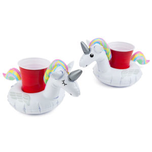 מארז שני חדי קרן מתנפחים לכוסות, מבית המותג Big Mouth הידוע במתנפחים המעוצבים והאיכותיים שלו.