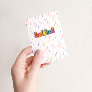 The most important thing to be is kind. Remind yourself and others on a daily basis with this cute and colourful enamel pin!