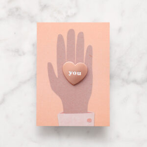 A sweet heart shaped pin made from high quality hard enamel and matt copper toned metal. Complete with a rubber clasp.