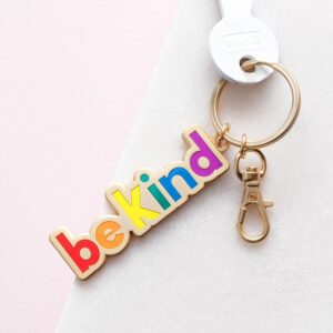 The most important thing to be is kind. Remind yourself and others on a daily basis with this cute and colourful enamel keyring!