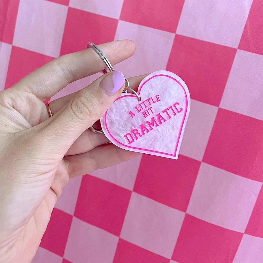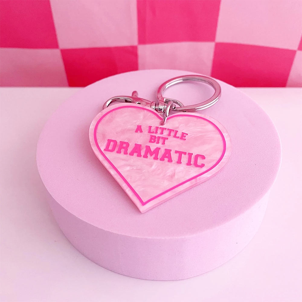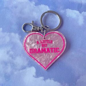 Light pink heart-shaped keychain harkons back to THAT t-shirt from Mean Girls.