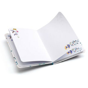 מכילה 78 דפים חלקים מאויירים, במעטפת כריכה קשה מעוטרת בנגיעות של פויל בגוון טורקיז. חבק מגומי סגול שומר עליה כשהיא בתיק.