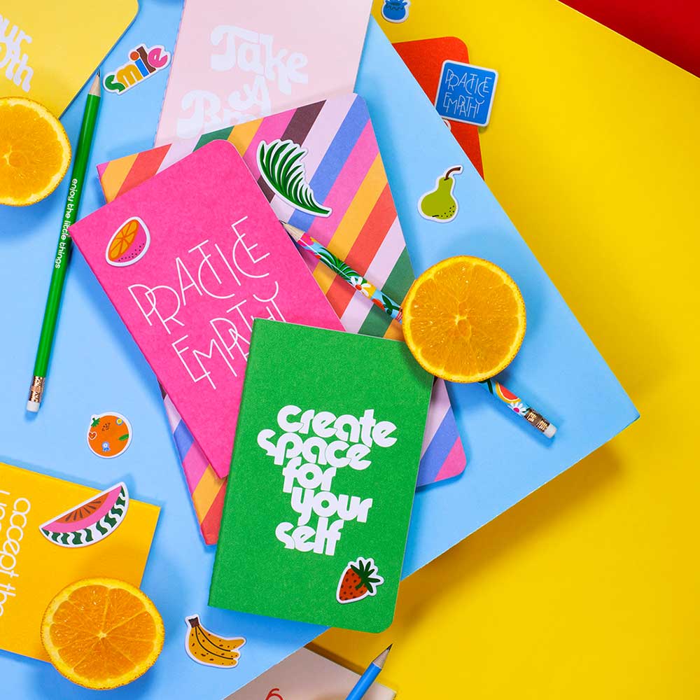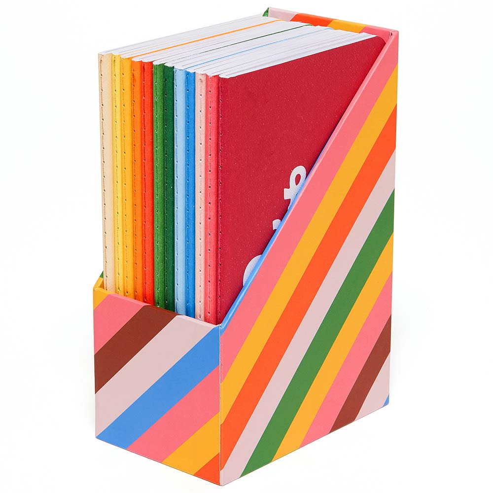 You know what they say: twelve notebooks are better than one. This set comes with a rainbow holder, and each notebook has a unique cover and 32 lined pages.