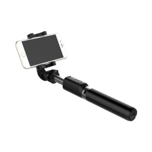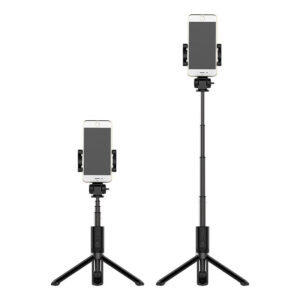 מוט סלפי איכותי עם חצובה ושלט רחוק בלוטות'. עשוי אלומיניום חזק ובעל ראש מתכוונן 360 מעלות.