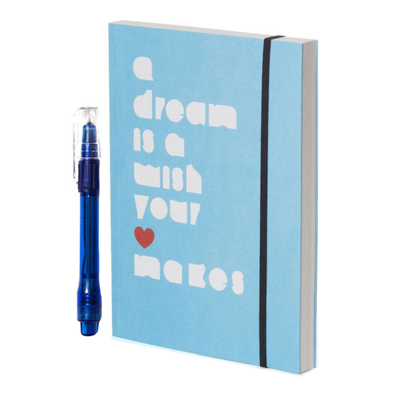 הסט כולל מחברת בעיצוב מרהיב וייחודי עשוייה נייר אקולוגי ועט לד במיוחד לכתיבת חלומותיך בחשיכה.