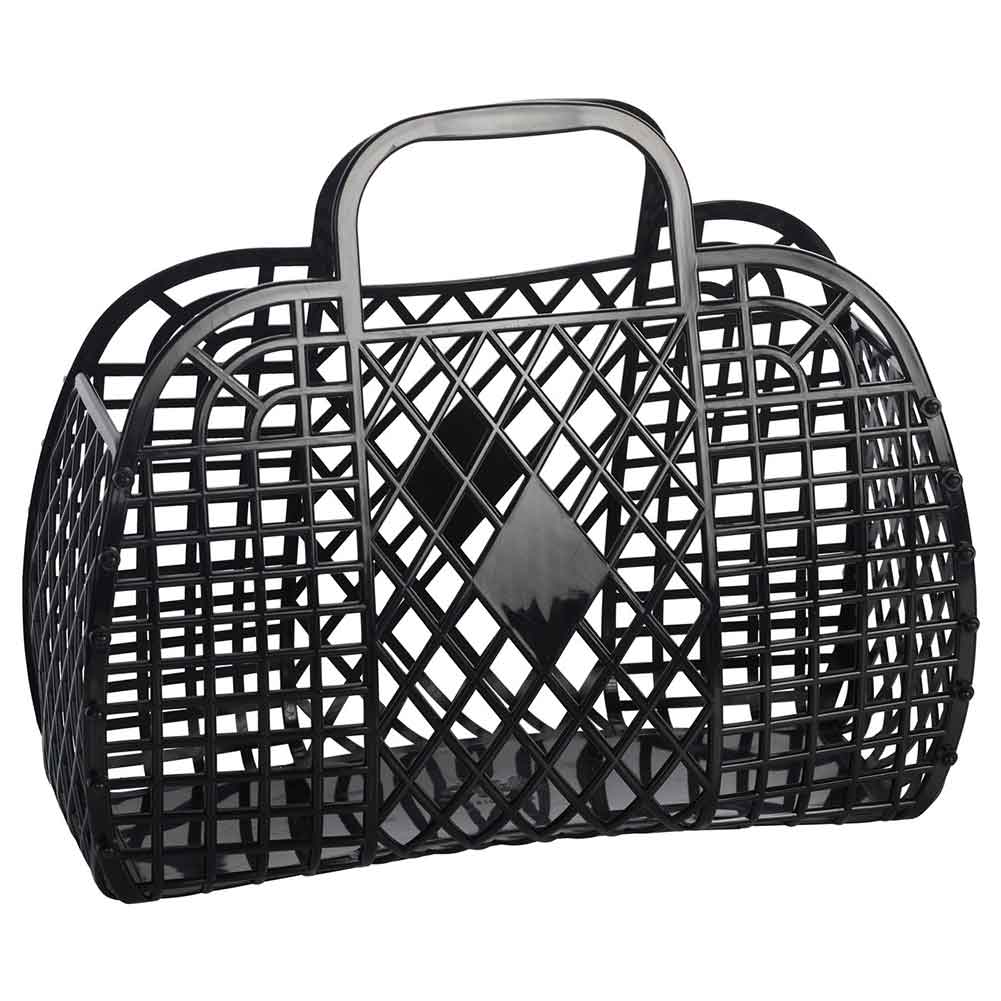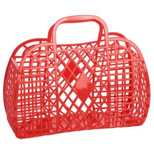 סל / תיק יד רטרו, מבית המותג האנגלי Sun Jellies הידוע בתיקים צבעוניים, קלים ושמחים, בהשראת עיצובי וינטאג' אוטנטיים ונוסטלגיים.
