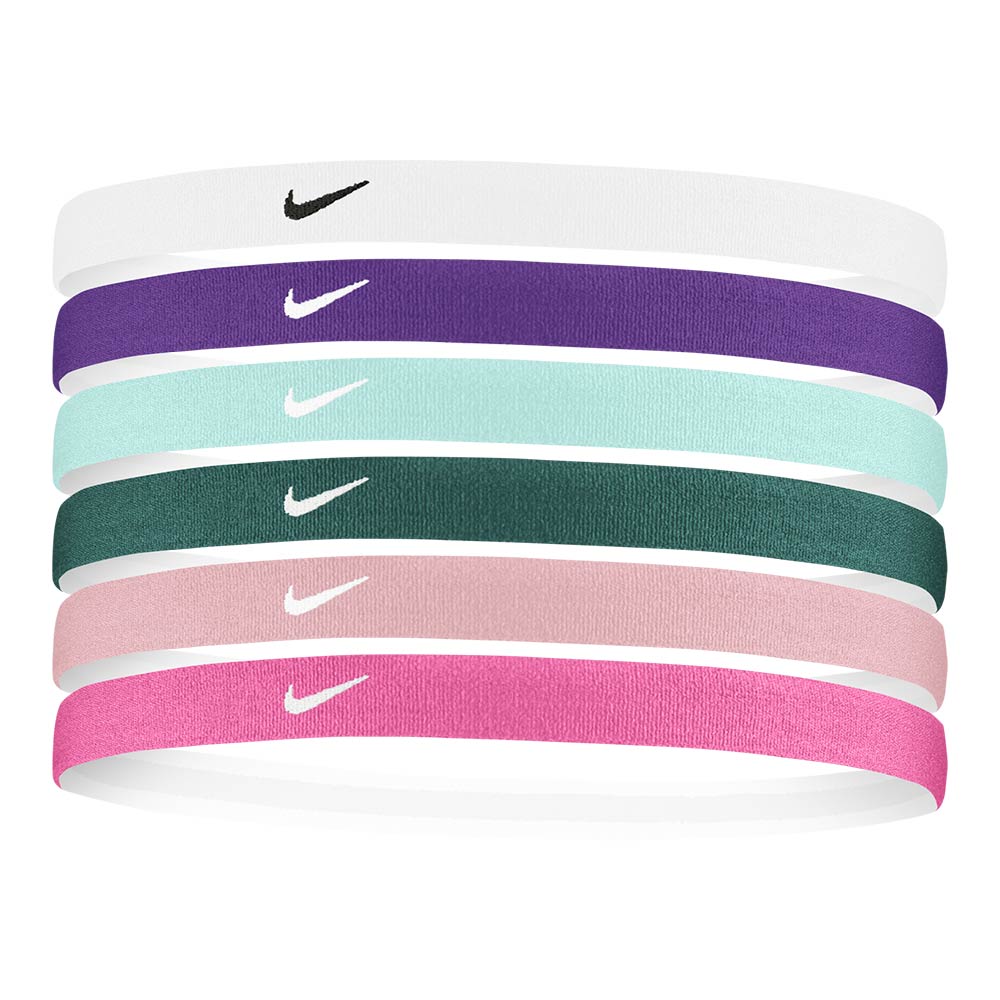 סט 6 סרטים לראש של NIKE, עשויים בד אלסטי וחזק, בשילוב פס סיליקון האוחז את השיער ומונע החלקה במהלך האימון / הריצה. מתאימים כסרט לשיער לספורט או כפריט אופנתי.