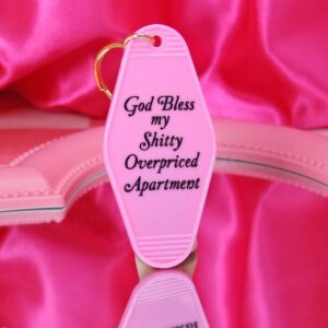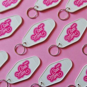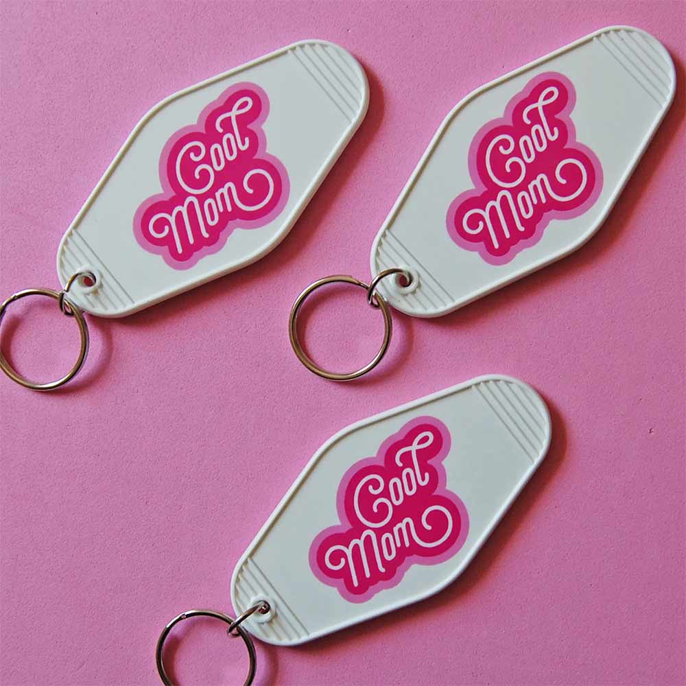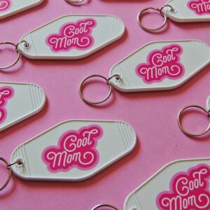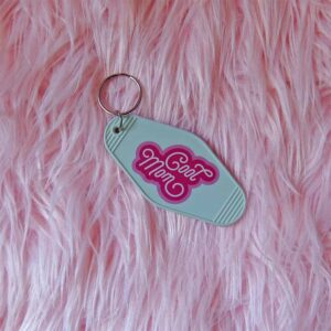 Keychain is 3.5" white plastic with a 1.25" keyring for all your keychains.